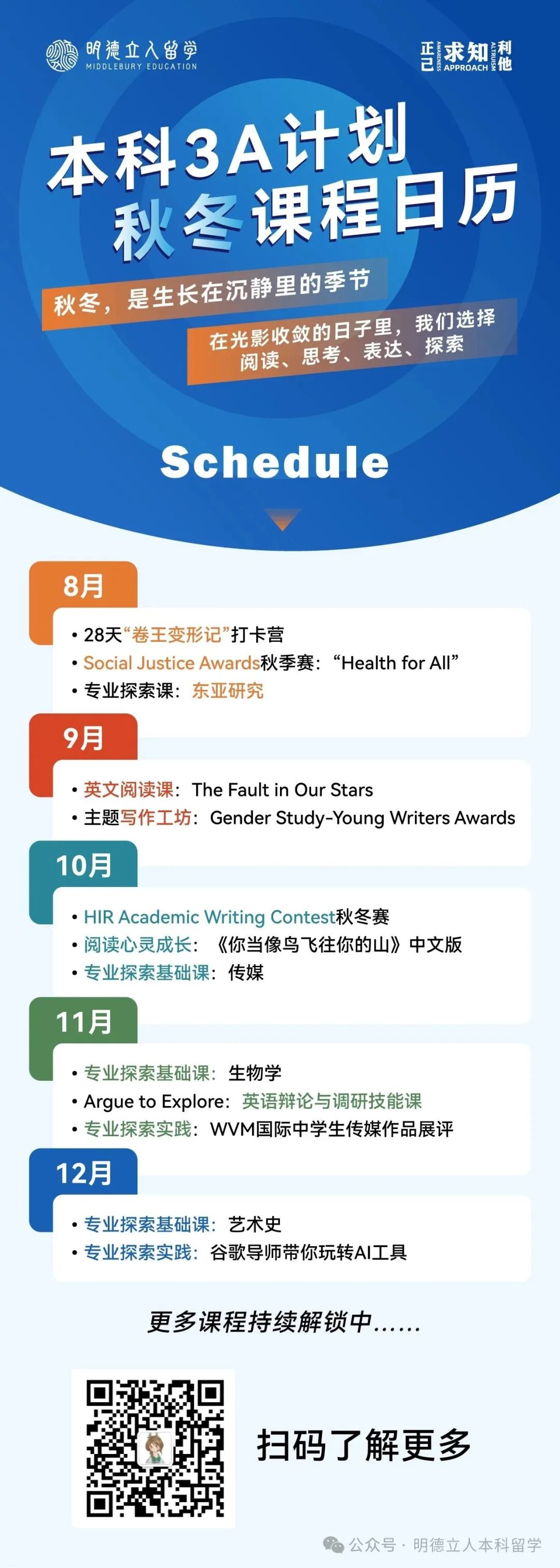 明德3A计划秋冬课程日历!