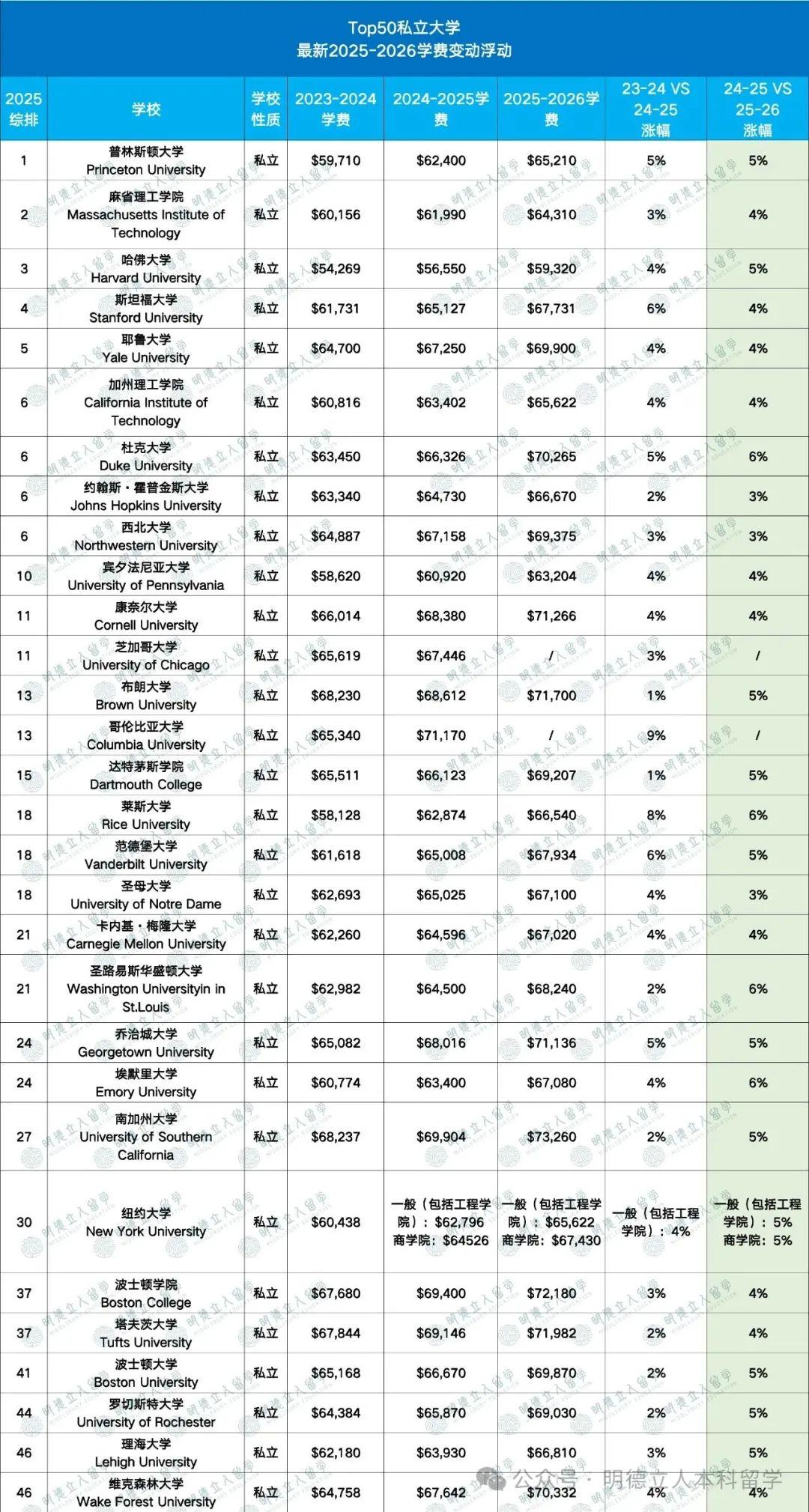2025年以来,名校们都陆续更新了2025-2026学年的学费信息,小藤盘点后的结论是——又是涨涨涨!??!