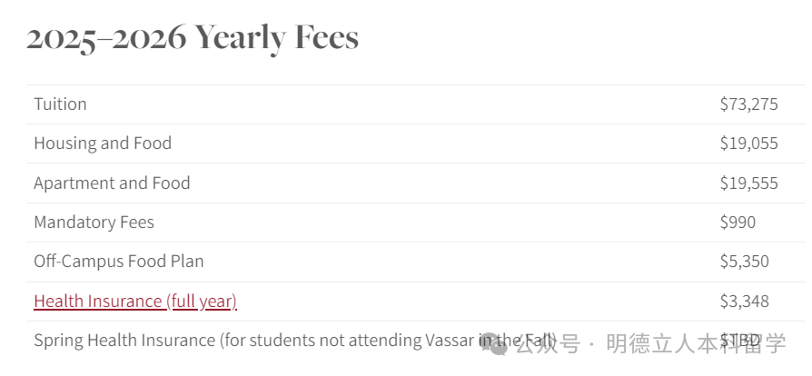 如果我们按照学院官网给出的全部费用合计计算,有3所学院的综合费用超过10万美元,最高的是瓦萨学院,一学年可达到约12万美元。