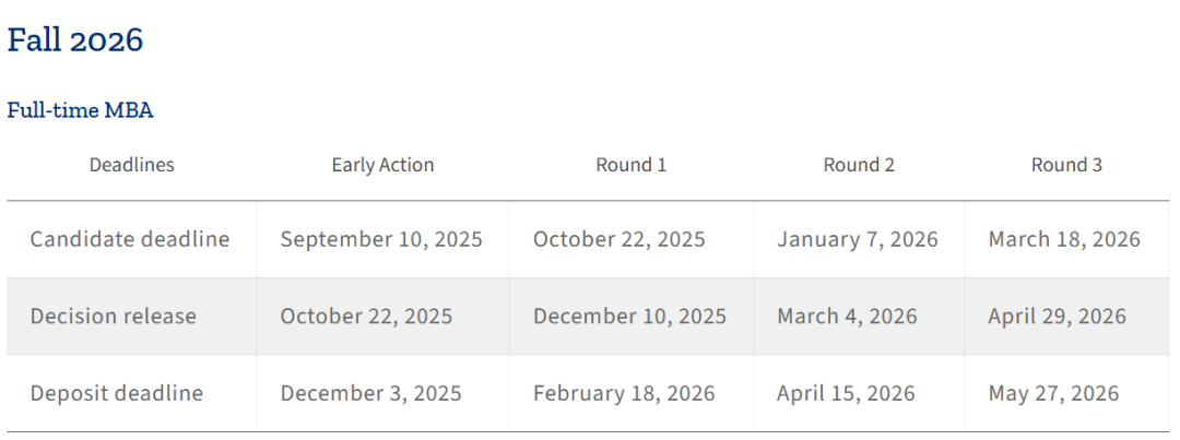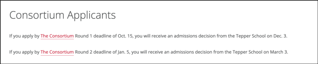 MBA的Consortium申请者首轮申请截止日期在10月15日,12月3日会收到录取通知。