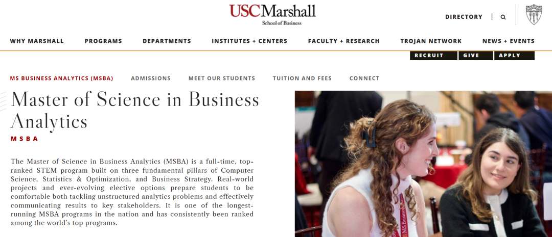USC Marshall学院的MSBA商业分析硕士,是美国一流的 STEM 课程!建立在计算机科学、统计与优化和商业战略这三个基本支柱之上。