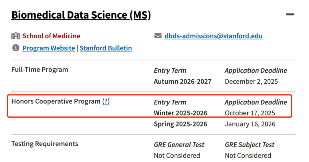 生物医学数据科学荣誉合作项目 春季入学申请是在10月17日截止。