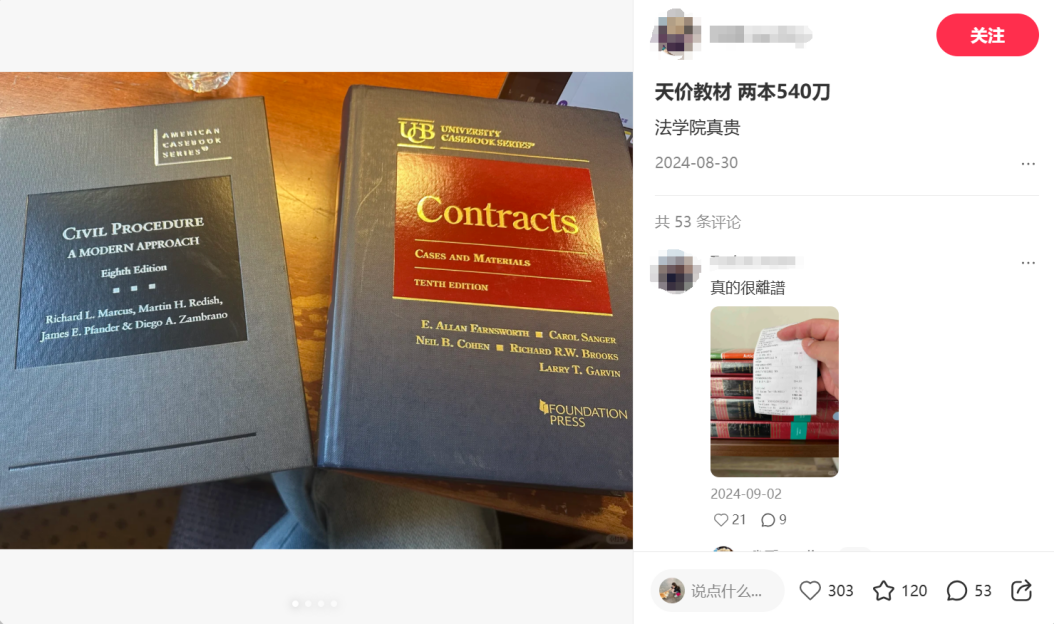 Be like:法学院天价教材,两本书540刀...