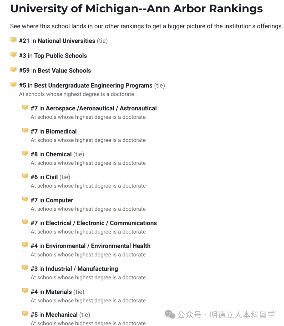 工业/制造工程全美第3,材料工程、环境/环境健康工程全美第4,机械工程全美第5,比藤校排名还要高。