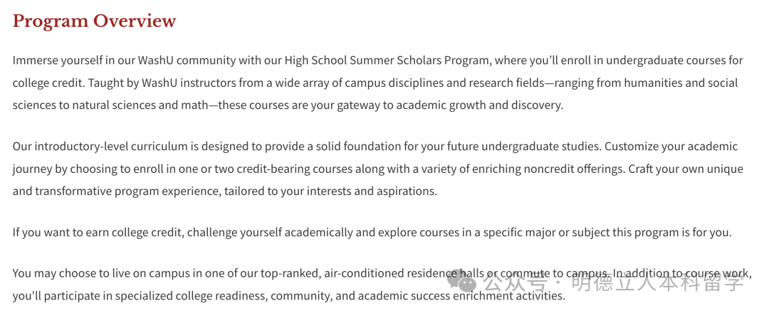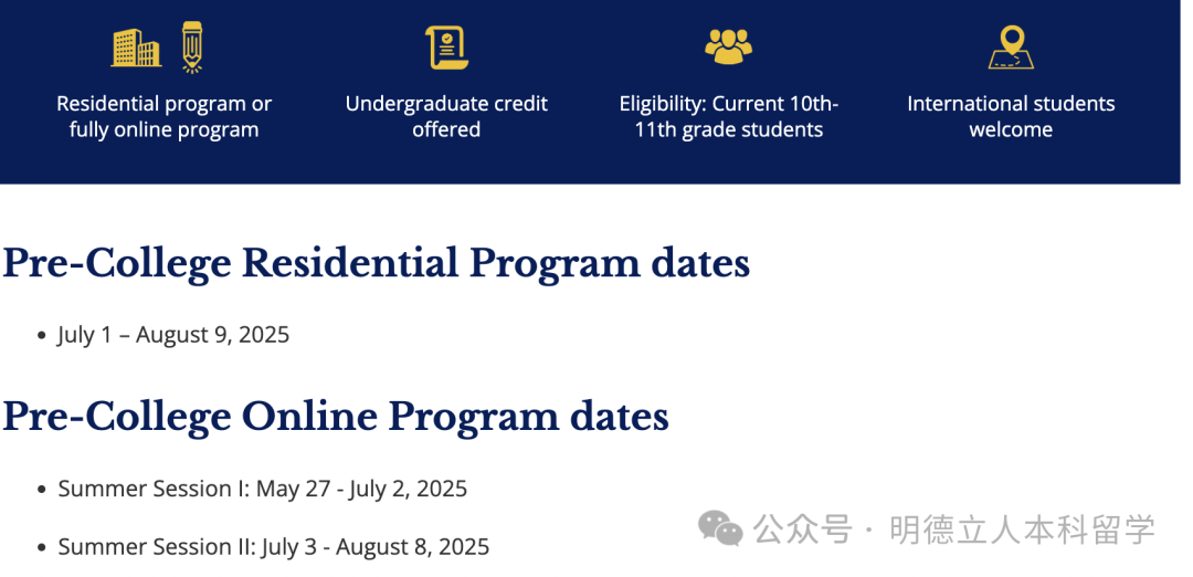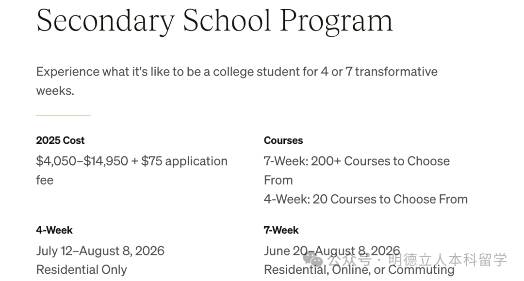 1周充实课:为学生提供短期学术和住宿体验的机会,要求申请者年满14岁,截止日期在2025年3月5日。