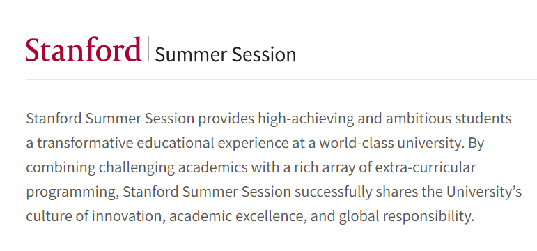 斯坦福夏校是一个8周的项目,2024年夏校是在6月21日-8月17日进行。
