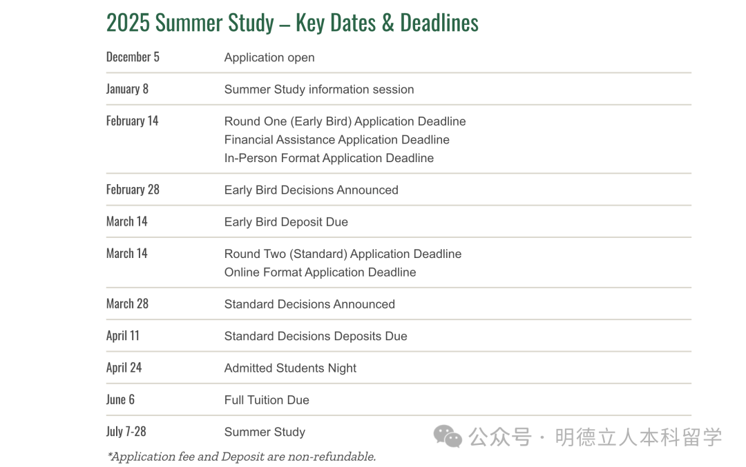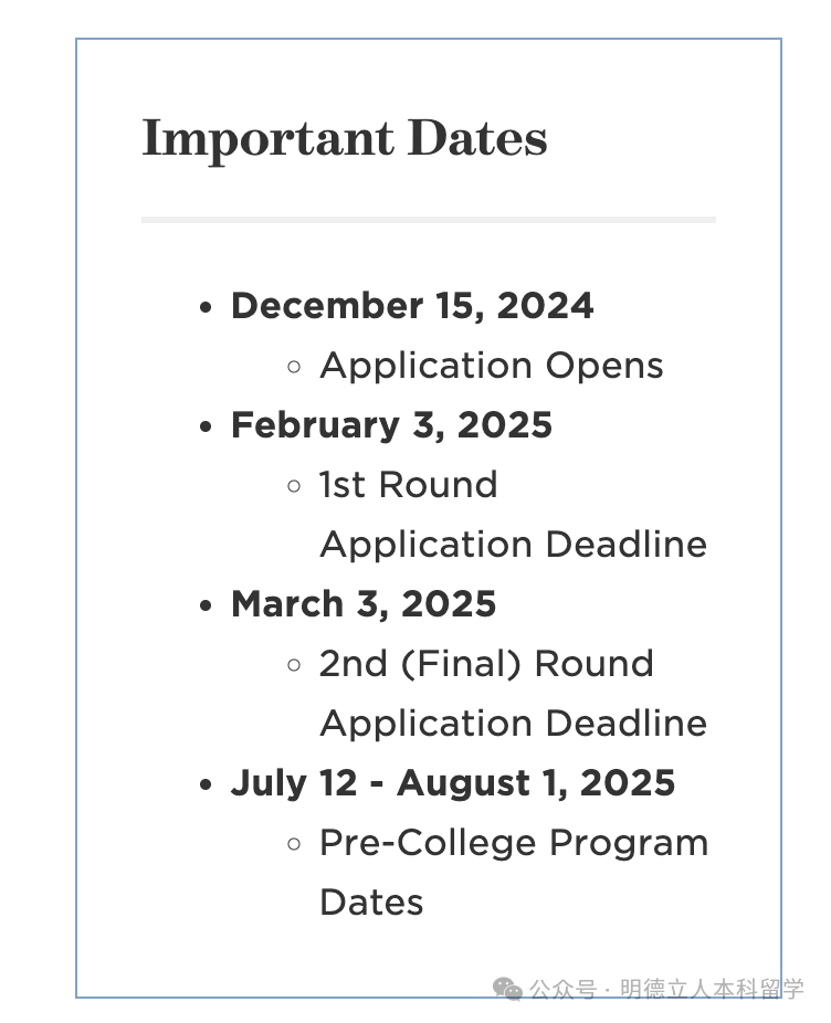 2026年夏校申请时间暂未公布,从2025年夏校的申请时间来看,有两轮申请。