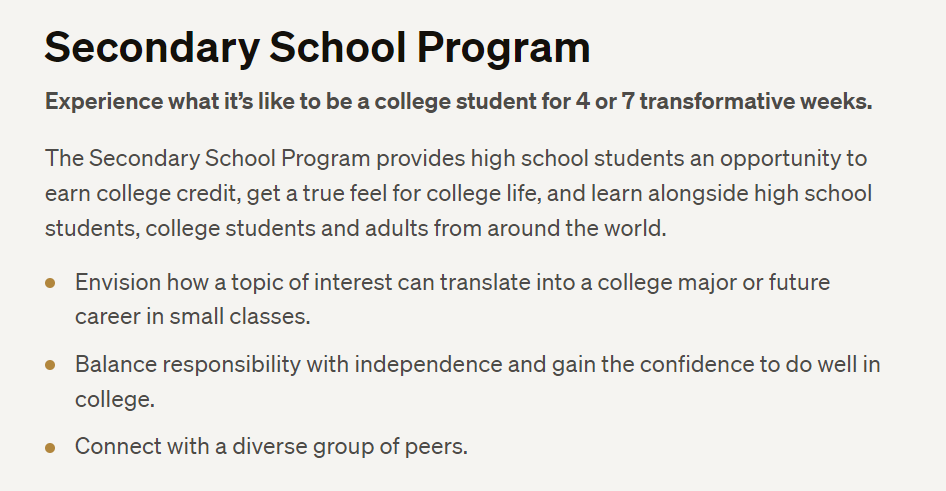 哈佛的中学课程项目是让高中生,用4到7周的时间体验大学生活,并且提供一个可以获取大学学分的机会。