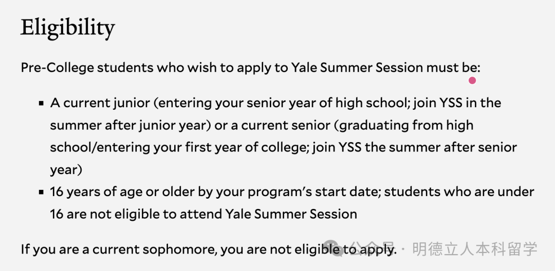 课程开始日期时年满16岁;未满16岁的学生没有资格参加耶鲁暑期课程。
