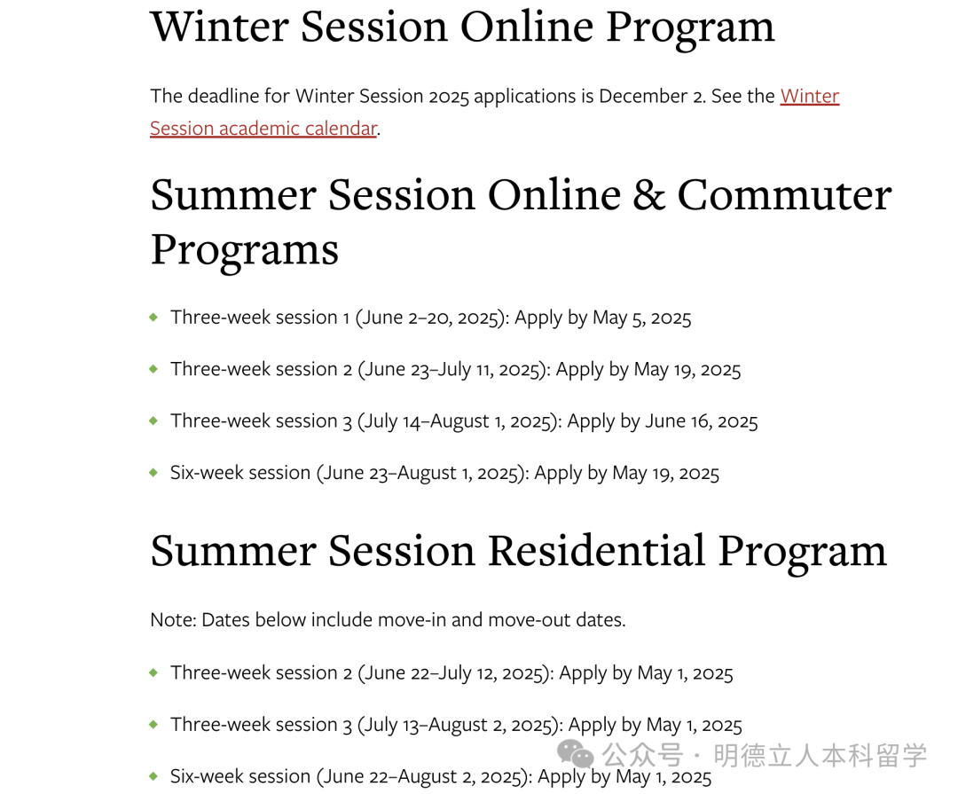 以2025年的暑期课程截止日期为例:
