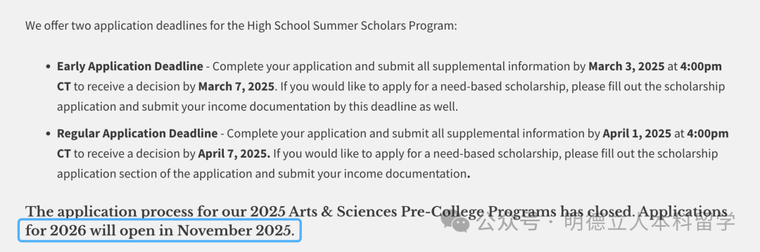 申请开放时间:2026年的申请将于2025年11月开放