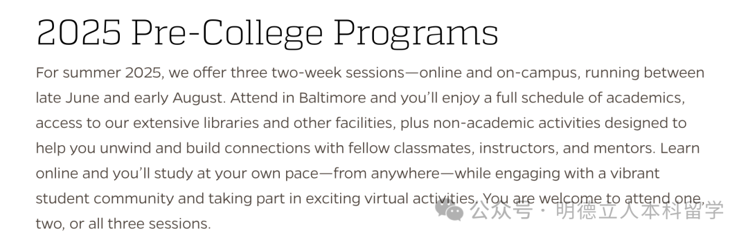 JHU的2026年夏季课程的开放和截止时间暂未公布。(2025年的申请和截止时间官网并未显示)