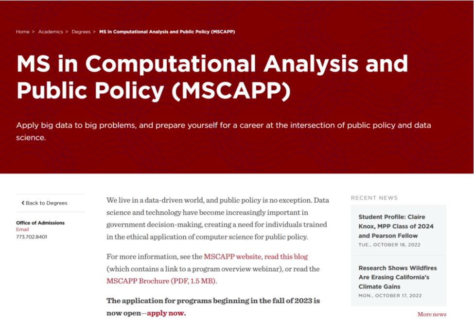 文科背景的同学想要转码也可以选择芝加哥大学的另一个方向——计算机系与公共政策学院联合开设了一个MSCAPP项目。