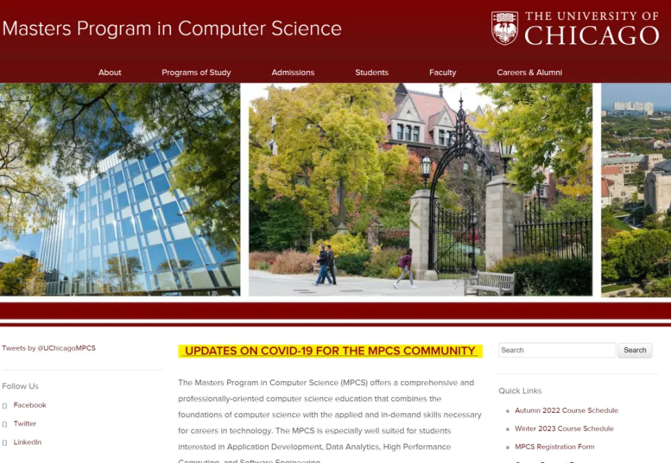 芝加哥大学MPCS项目注重将计算机与商业相结合,申请人需要有编程和数学基础。