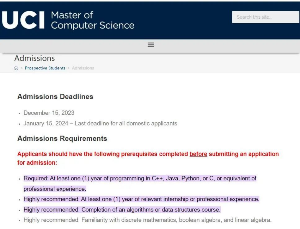 其中CS并没有对申请者的背景作严格要求,官网指出CS、数学、工程、或者其他专业背景学生都可以申请。