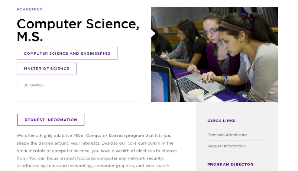 除了CS的核心课程外,学生有大量的选修课可供选择,诸如计算机和网络安全、分布式系统和网络,计算机图形和网络搜索技术等。