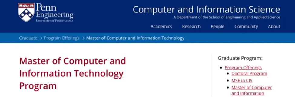 MCIT的课程设置更偏基础一些,共要求上10门课,包括6门CIT课与4门选修课(要求至少3门是CIS课)。每年有两轮申请,分别在11月和12月。
