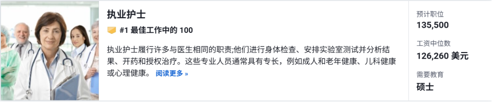 由于低失业率和高中位薪资,执业护士这一岗位连续两年拿下榜首!