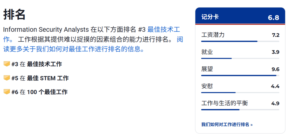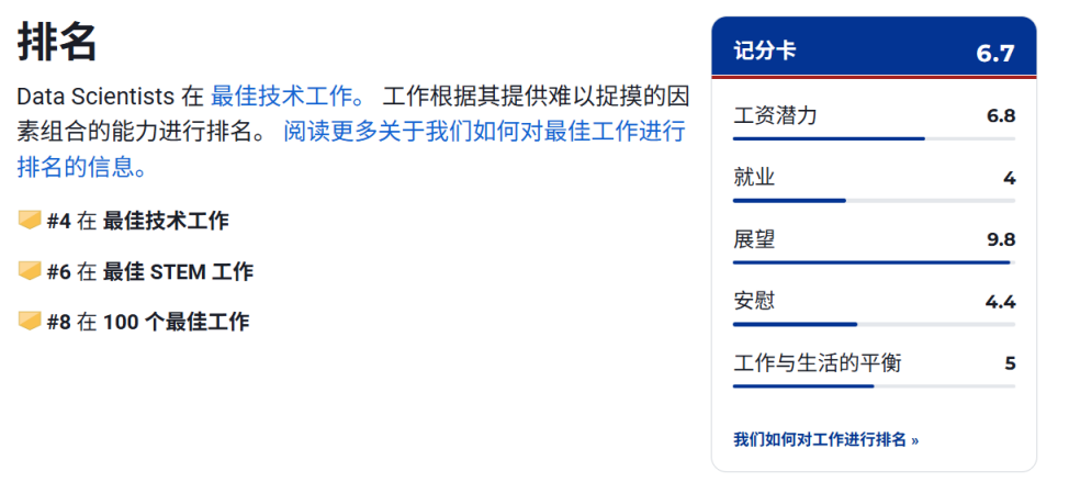 根据各个职业在过去10年的增长速度、中位数工资、就业率、未来工作前景、压力水平和工作与生活的平衡等方面进行综合评分。
