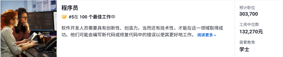 美国劳工统计局预计,2023年至 2033年间软件开发人员的就业将增长 17.9%,估计将开放 303,700 个工作岗位,是所有岗位中开放职位最多的。