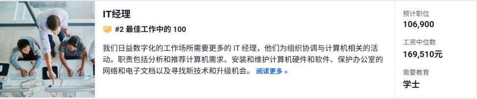 根据美国劳工统计局预测,2023年至 2033年间,信息技术经理岗位的就业增长率将达到 17.4%,预计新增约 10.69 万个相关岗位!