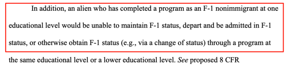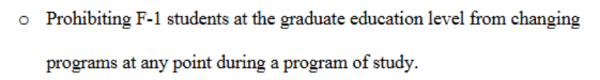研究生学位及以上的F-1学生在学习项目的任何时间点都不得更换项目。