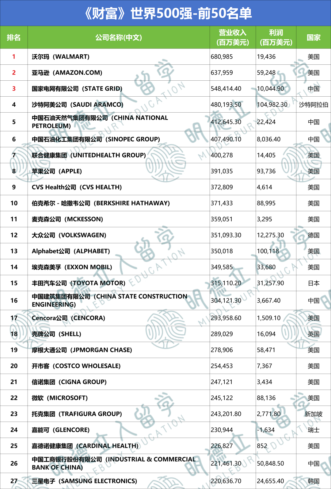 世界500强的企业汇集了各国最顶尖的企业,发展前景、薪酬福利自然也是最优越的,简直就是留学生中的“就业榜单”!