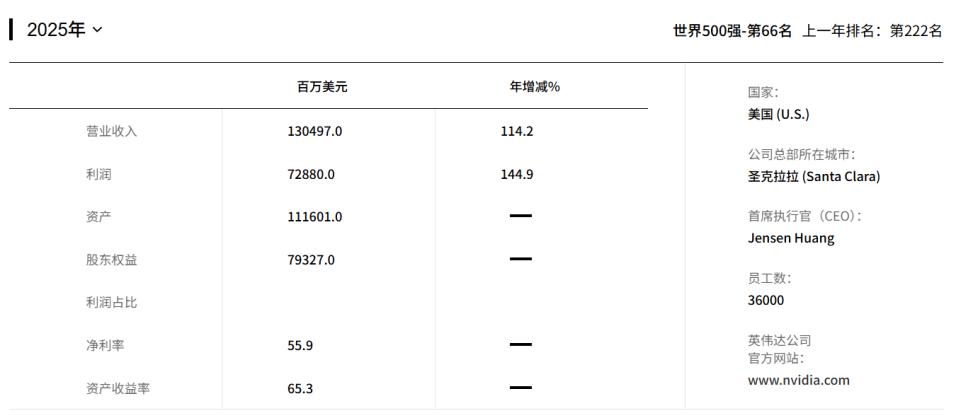 去年第一次上榜的英伟达公司利润同比大幅增长约145%,首次进入利润榜前十位,位列第六,成为榜单上最亮眼的黑马!