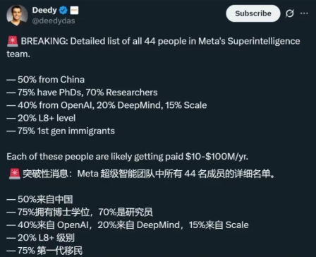 比如说前段时间爆火的“Meta的44人超级天团”,人均年薪$1000万起步,人均名校CS博士起,达到这个程度需要有多年的积累。