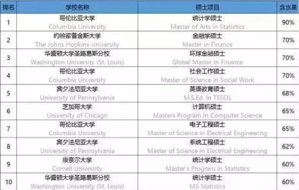 哥大统计硕士含水量最高?