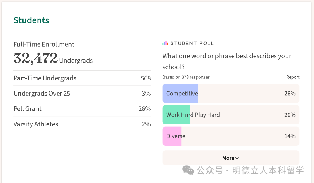 因此在学生评价中,26%的学生认为UCLA是充满竞争的,但同时也有20%的学生认为UCLA是“Work hard Play Hard”,同时具有两面性。