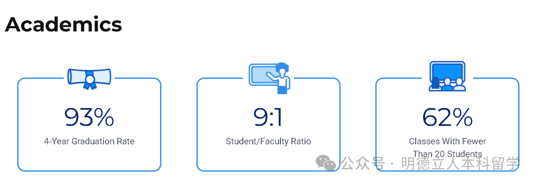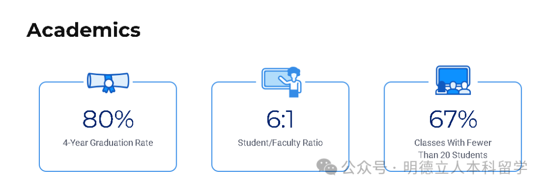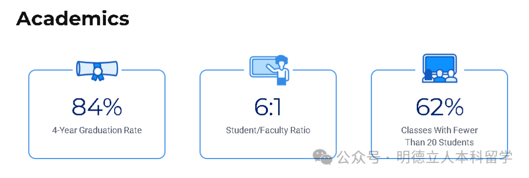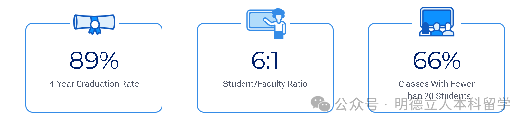精英小班教学,师生比7:1,超过60%的班级人数少于20人,教授对本科生的关注度极高,互动紧密。