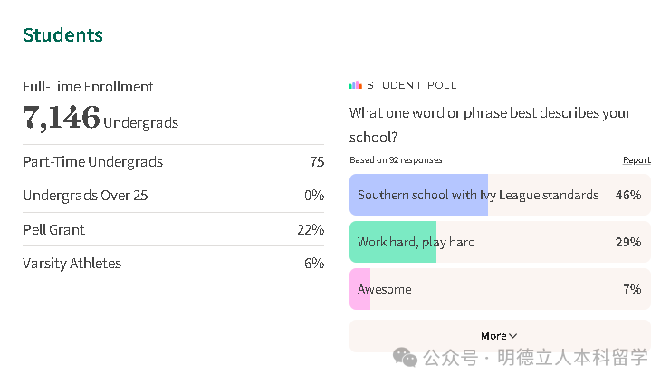埃默里有“南方常春藤”之称。拥有顶尖的师资和设施,尤其在商科、人文社科类等领域实力超群。
