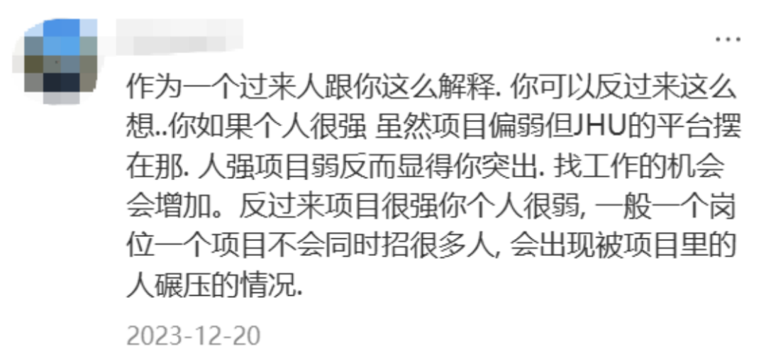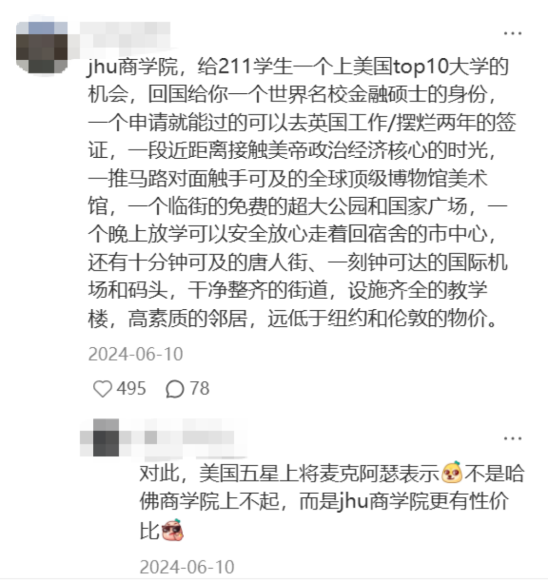 有同学分享:“JHU商学院的简历在美国连hr都看不上,但是回国还行!”