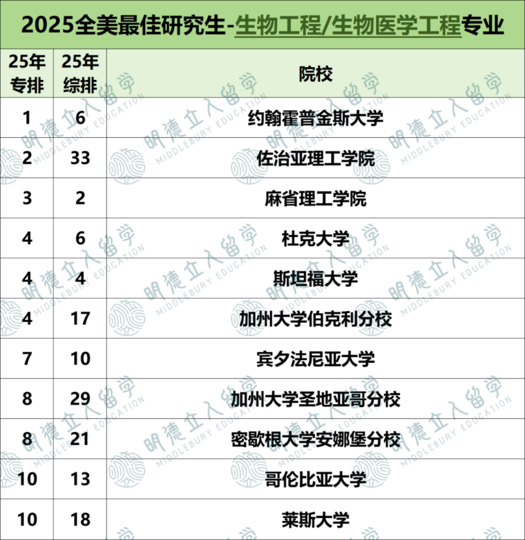 2025年US.News中,JHU的生物工程/生物医学工程专业全美第一!
