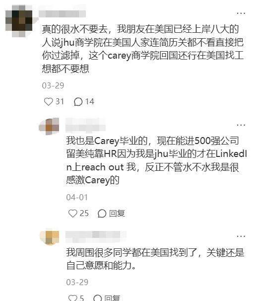 也有同学说:“我也是Carey毕业的,这才有了进世界500强的门票!不管水不水,我还是非常感激carey的!