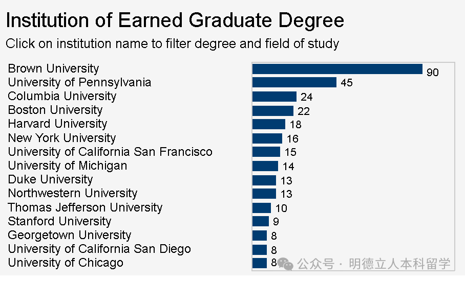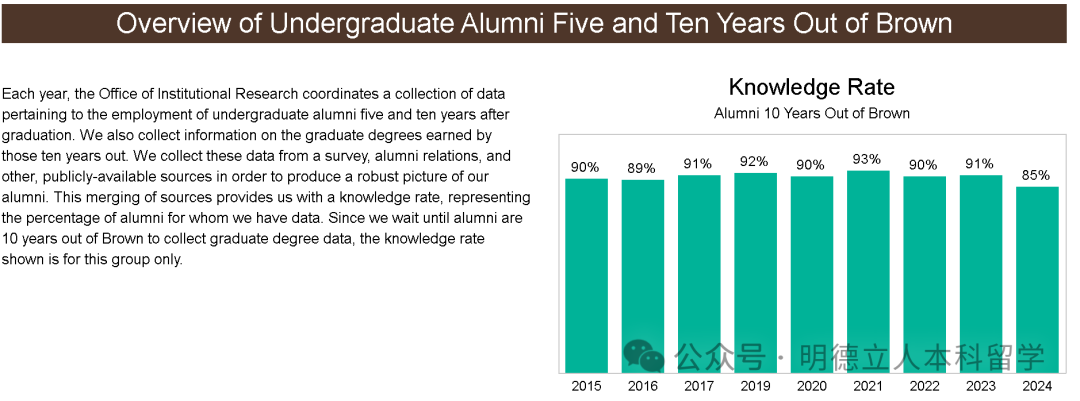 同时布朗培养的本科生在Top20也备受认可,去往其他顶尖高校的还有:宾大、哥大、哈佛、杜克、西北、斯坦福、乔治城、芝大。
