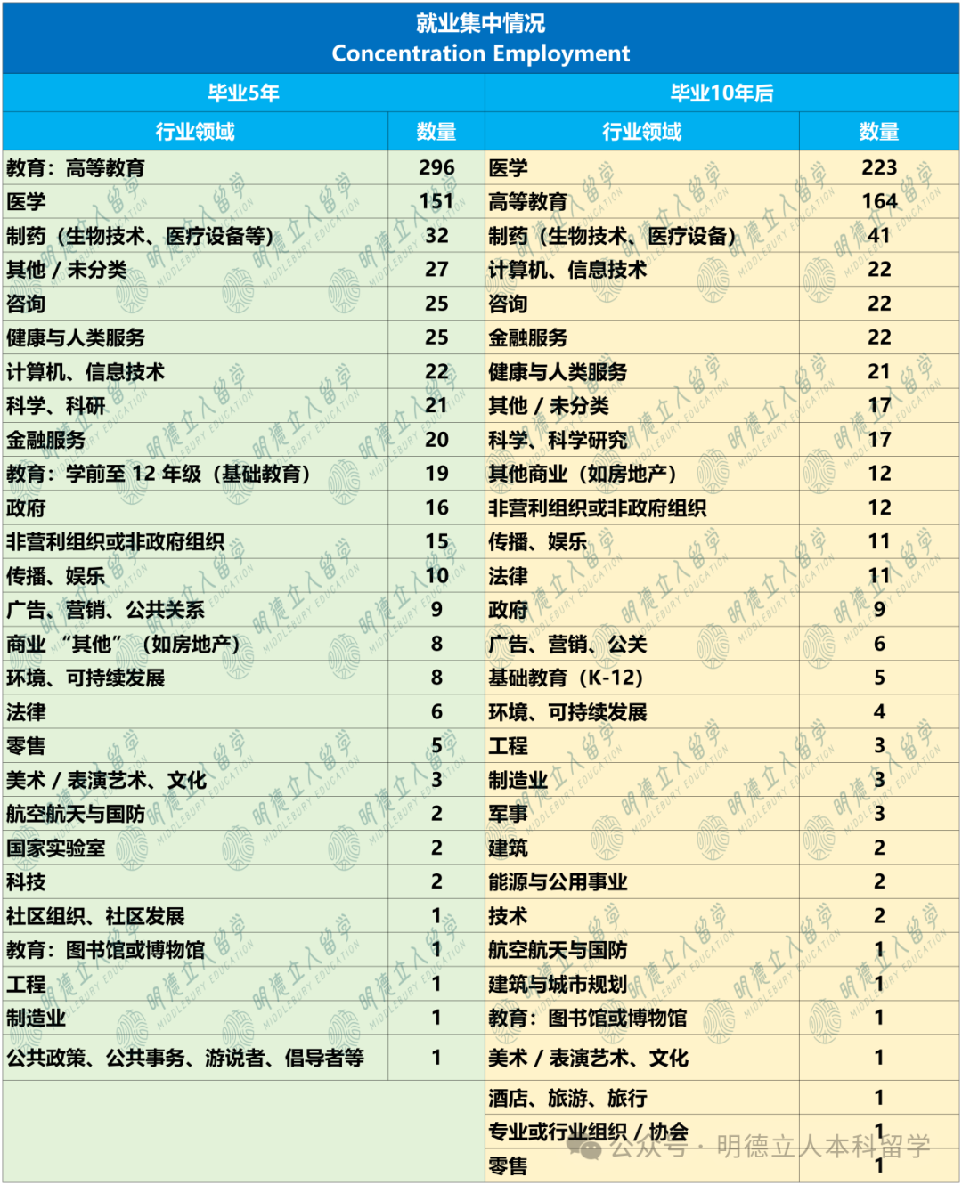 布朗大学每年会系统追踪毕业5年及10年后本科校友的就业情况,今天我们重点看看生物专业,看看能挖掘出什么有价值的信息!