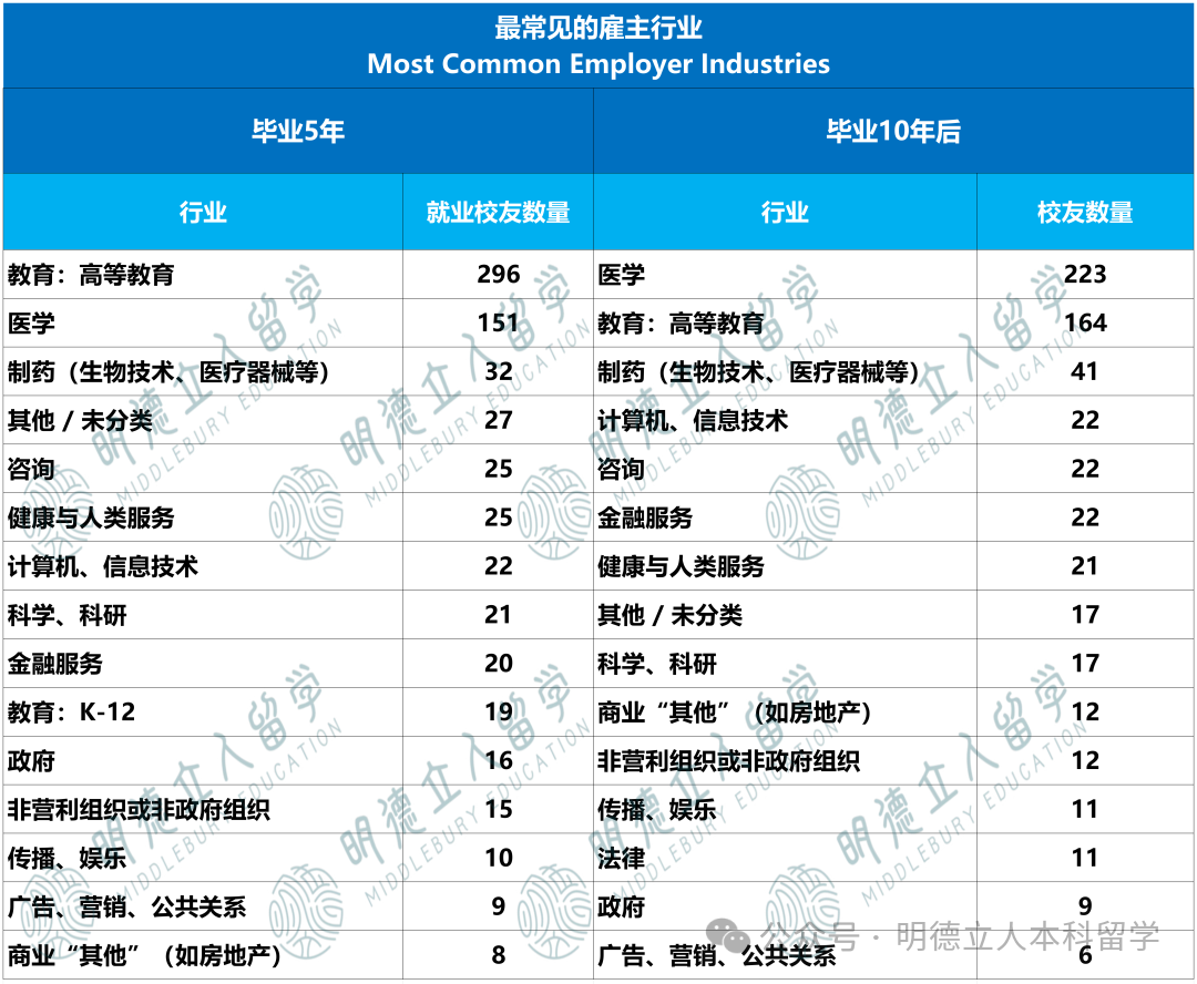 毕业10年后进入该领域的人数增至223人,占比提升到35%,实现了人数和比例的双增长,跃升至第一位!