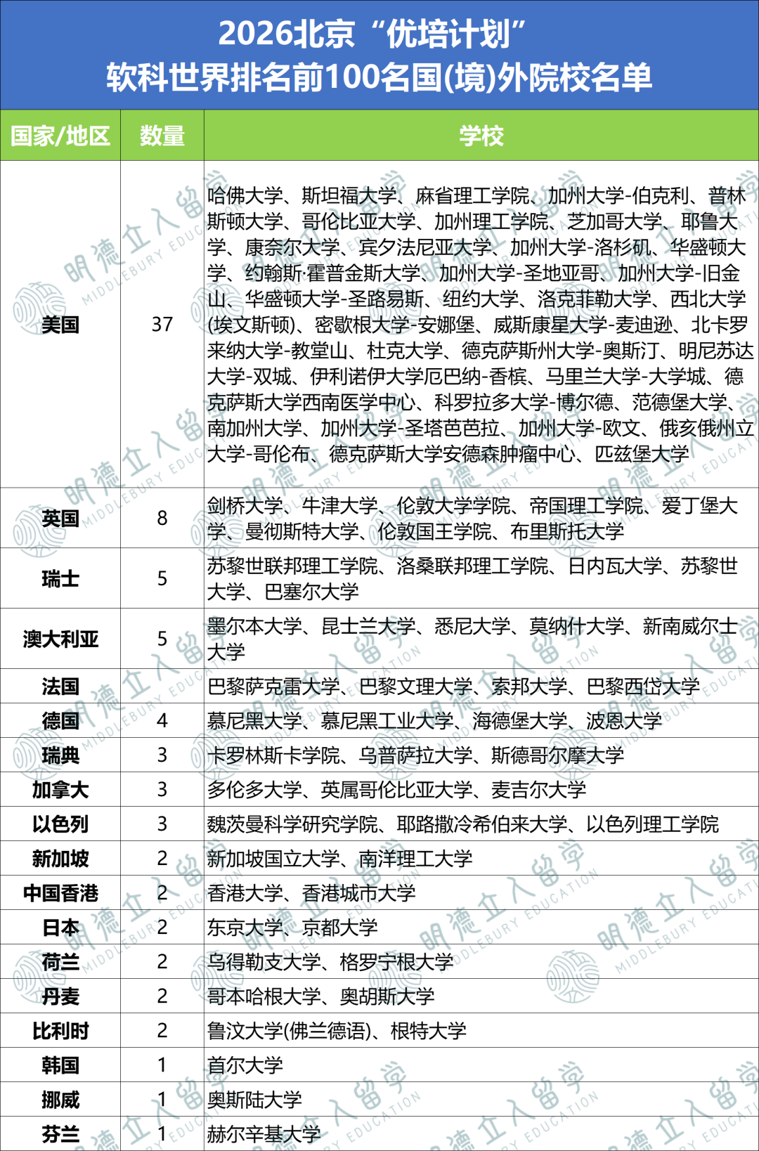 这意味着,今年北京“优培计划”仅接受软科前100名大学的硕士生,并且本科也须在国内“双一流”高校和“双一流学科”高校就读。