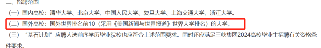 还有国企--中国长江三峡集团的“基石计划”招聘留学生则只参考U.S.News排名。