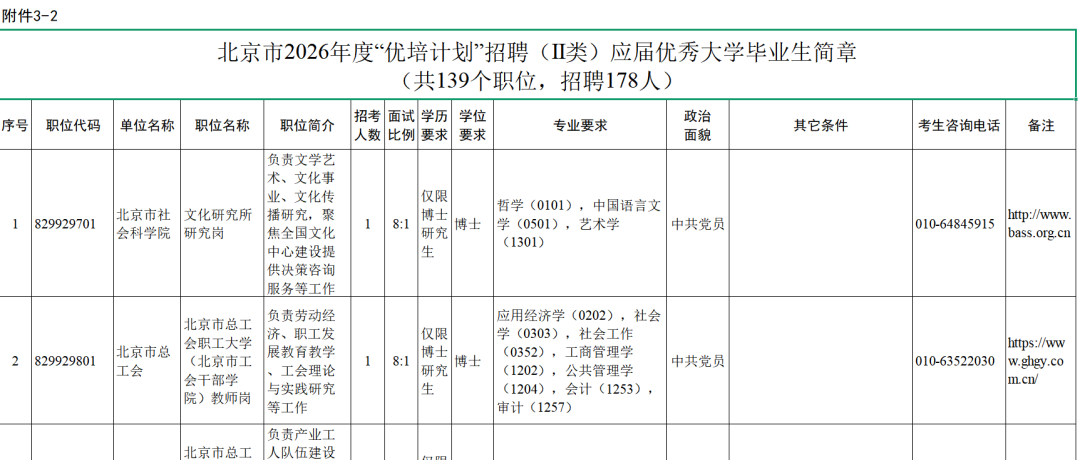 图 | 北京市优培计划招聘岗位Ⅱ类名单