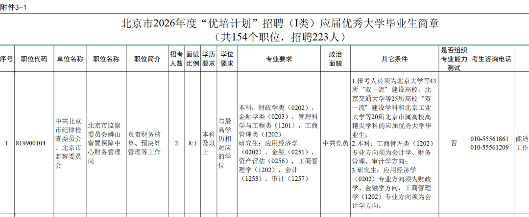 紧接着北京市委组织部发布了《北京市2026年度定向选调和“优培计划”招聘应届优秀大学毕业生公告》!