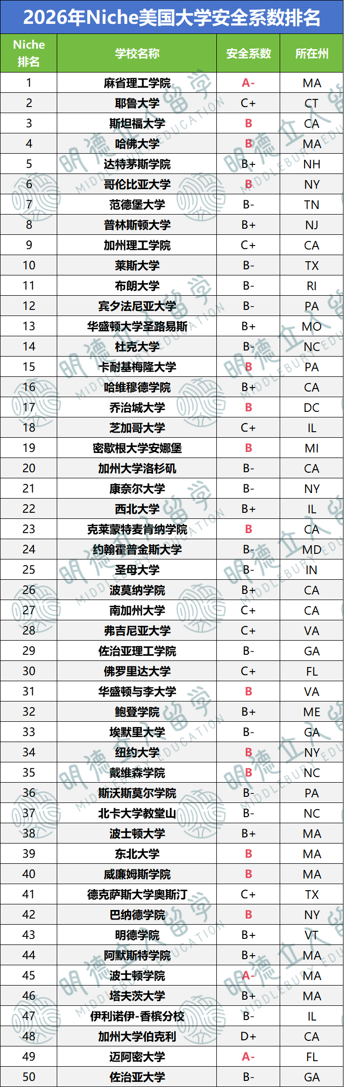 ——整理出了《美国50所安全高校排名》,留学安全感拉满~