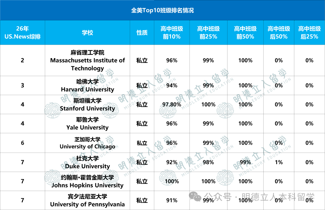简单来说,对于Top私立校来说,本身就很注重生源质量,敢去提交申请的学生有一定实力,因此从“班级排名”相对位置,更能看出其水平位置。