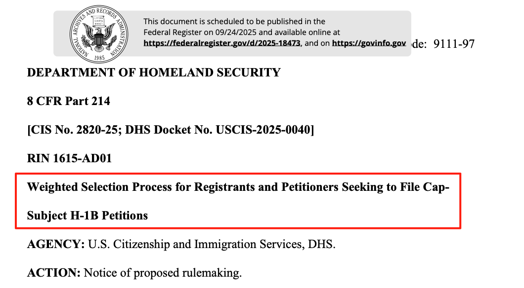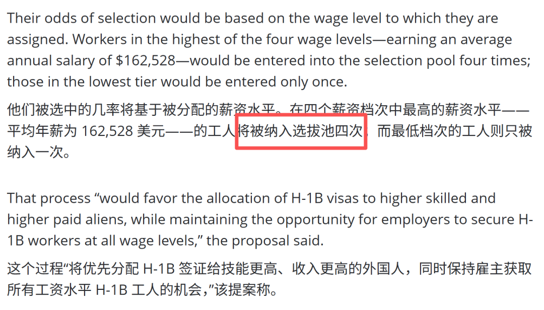在今年7月中旬,H1B抽签政策改革就进入了提案阶段,当时流出的信息内容较少,主要还是围绕“按薪分配”的规则进行加权抽签这一规则展开。