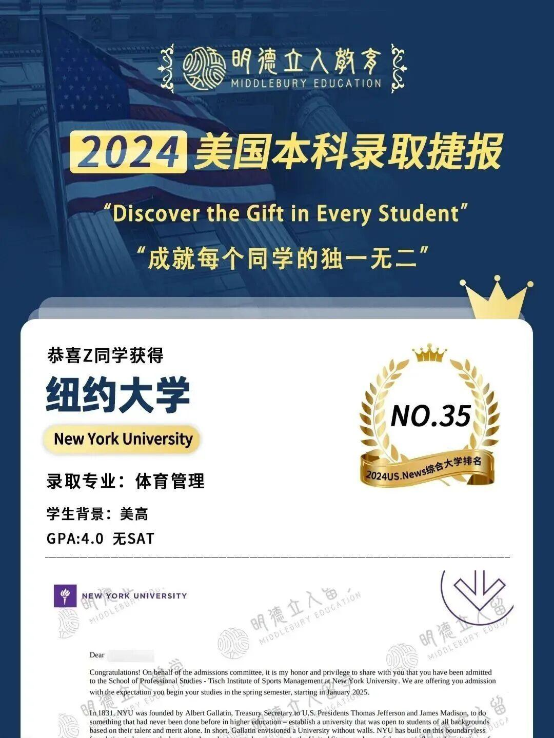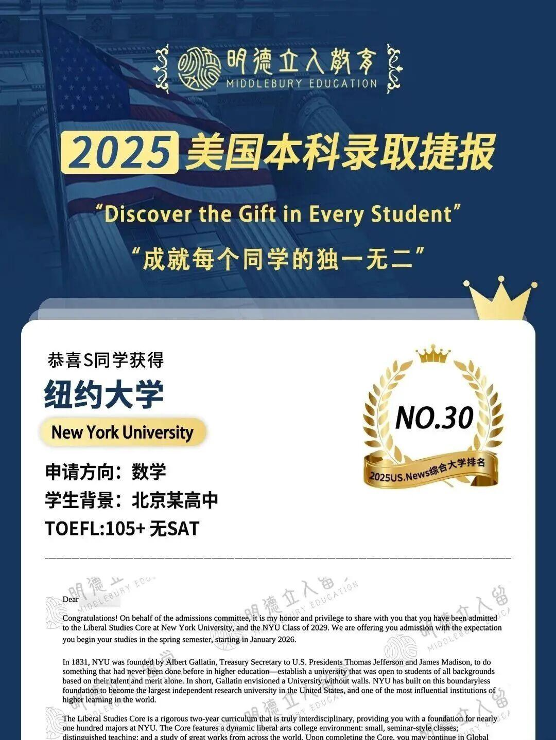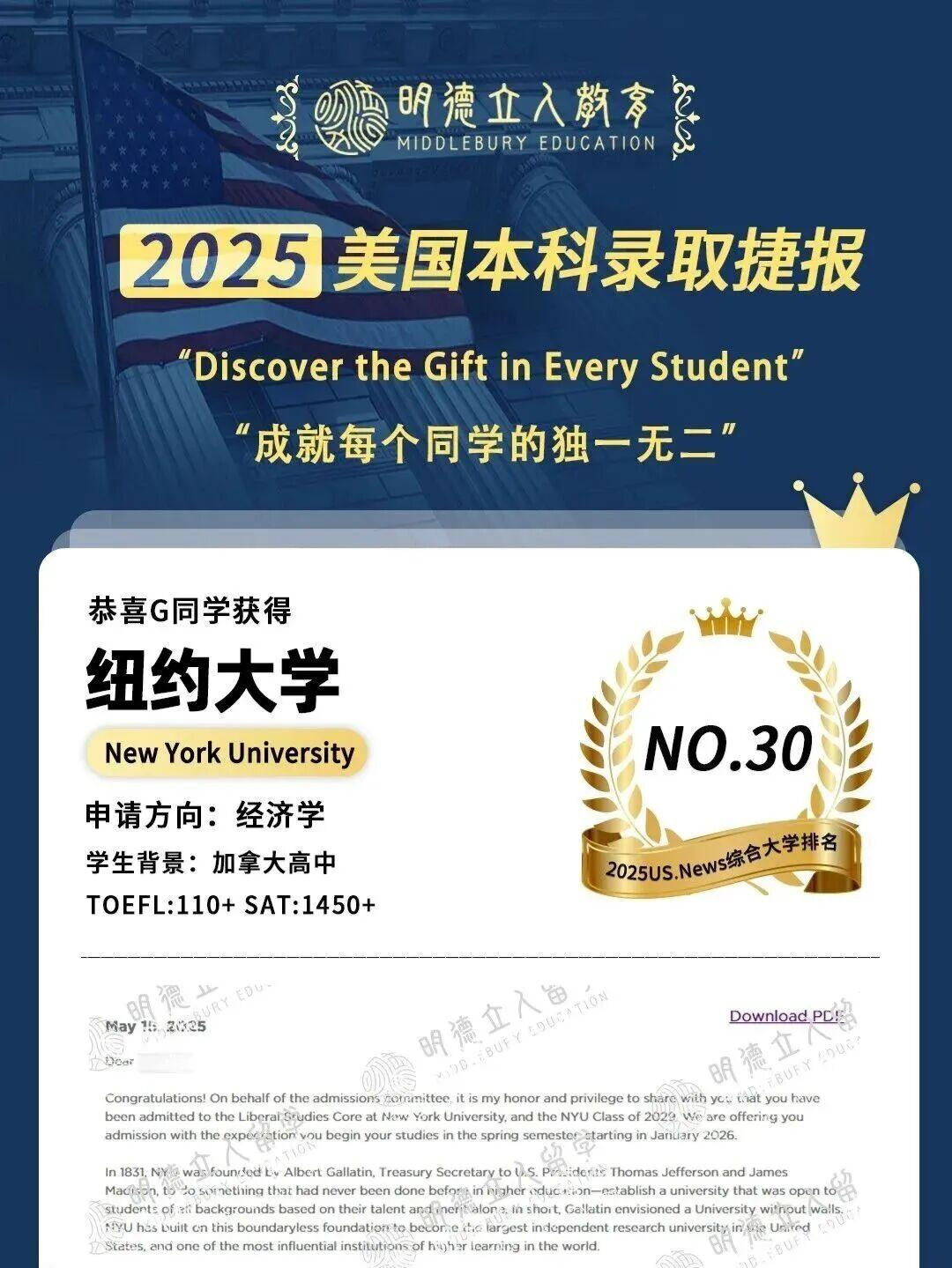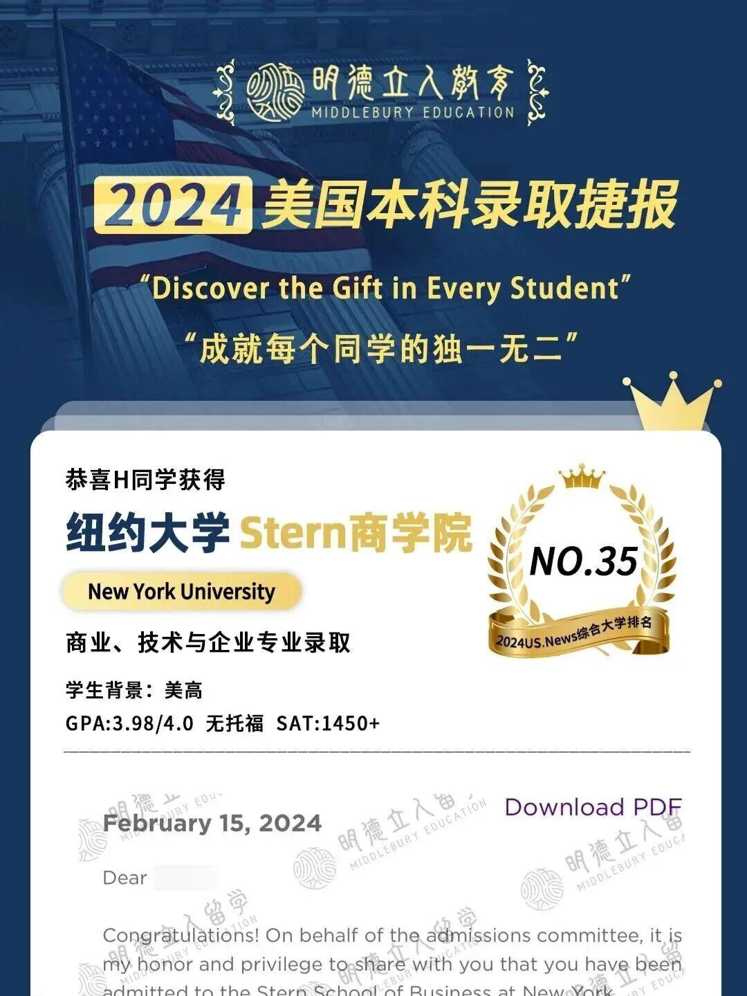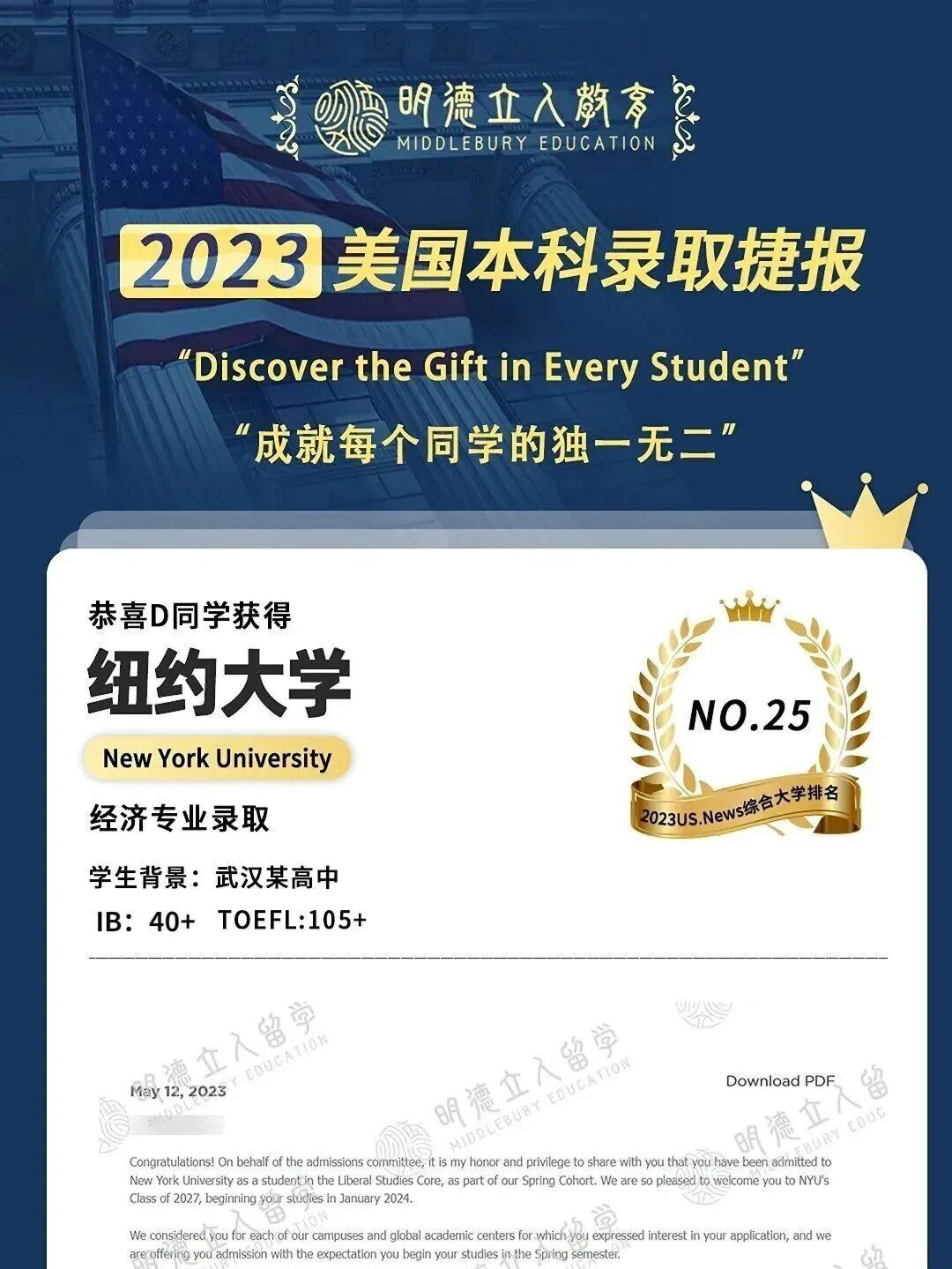 不过,明德深耕美本申请10年+,在助力圆梦上一直相当给力。近年来,明德学员斩获了21枚NYU录取,其中不乏难度指数TOP级的Stern商学院、Tisch艺术学院。