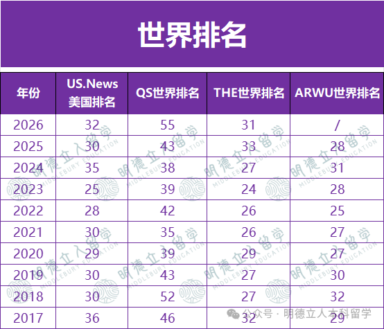 -- 纽约大学不仅地理位置得天独厚,排名还常年镇守top30,几乎所有商科专业、计算机科学、护理、心理学和经济学都超级能打,海外学习机会丰富。