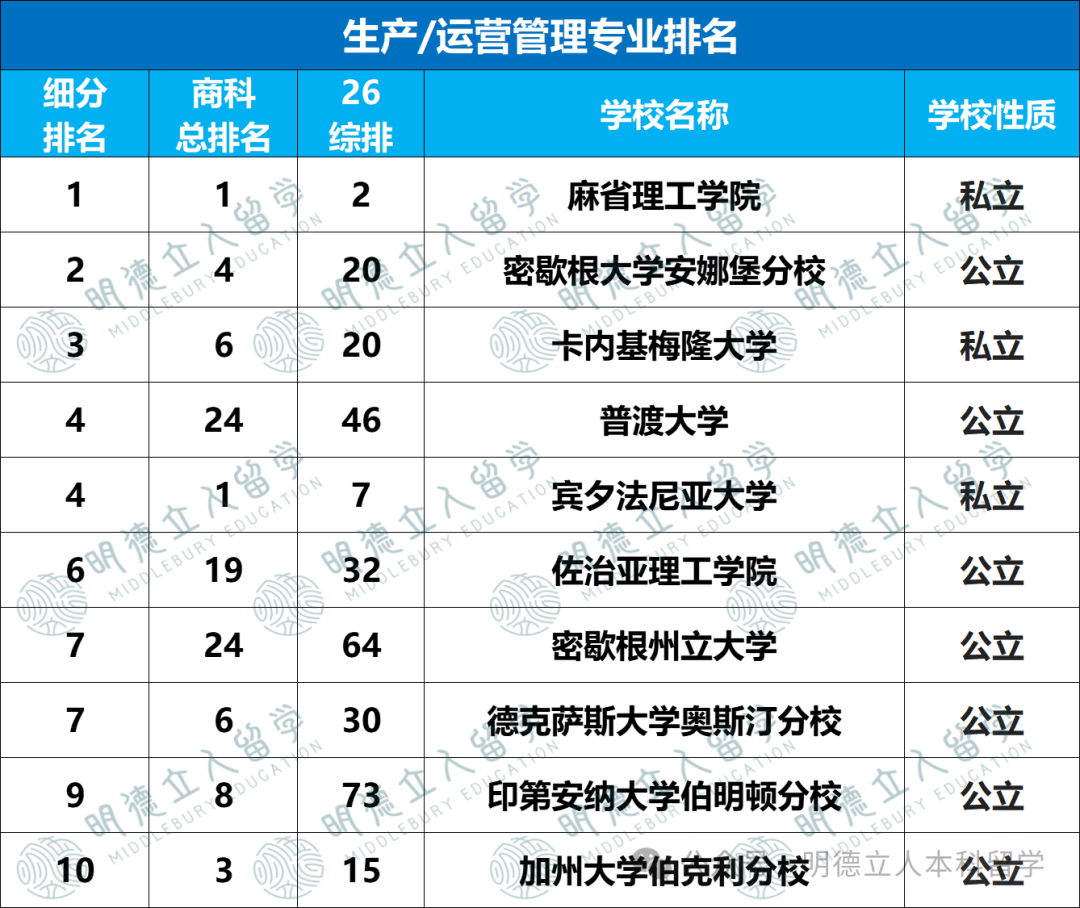 除了上述出现比较频繁的学校,在生产/运营管理方面可以重点关注密歇根州立大学,和德克萨斯奥斯汀分校并列全美第7;