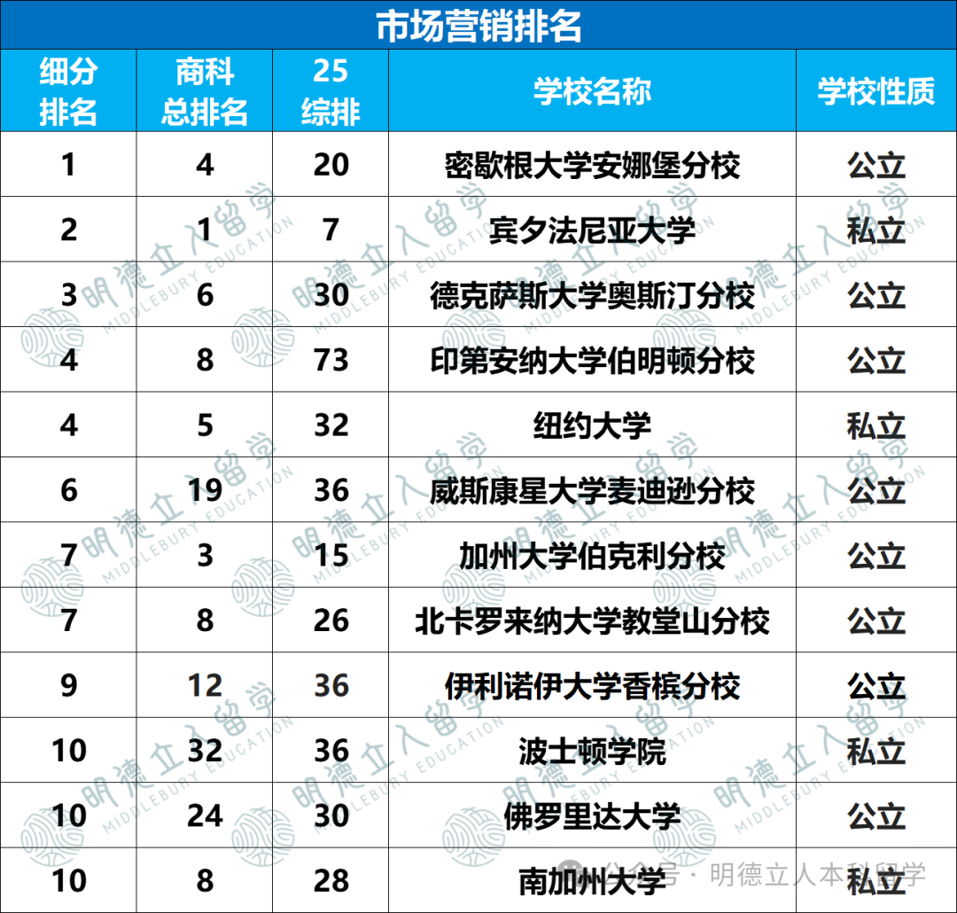 市场营销是商科很传统的细分专业,密歇根大学安娜堡分校来连续位居全美第1,宾大、德克萨斯奥斯汀分校分列第2和第3名。